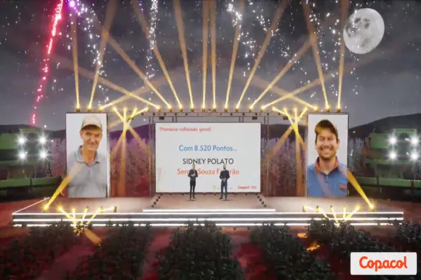 Os números e o anúncios dos vencedores do projeto 460, safra 202/2021, foram apresentados durante evento online, realizado na noite desta quarta-feira, 27, na sede da Cooperativa em Cafelândia, em um estúdio virtual: o cenário noturno, com luzes e show de fogos de artifício, no CPA virtual, abrilhantaram o evento.