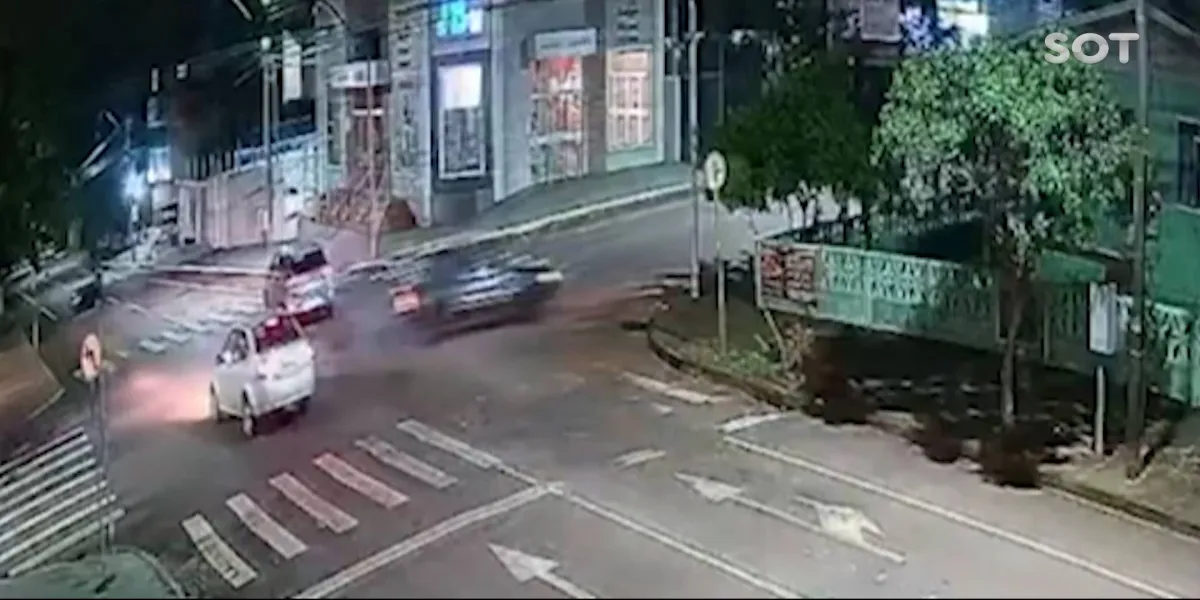 Nas imagens é possível ver o automóvel pela Rua Cuiabá, momento em que ao se aproximar da Rua Marechal Candido Rondon, acabou perdendo o controle da direção vindo a colidir fortemente contra uma árvore e tombando em seguida.
