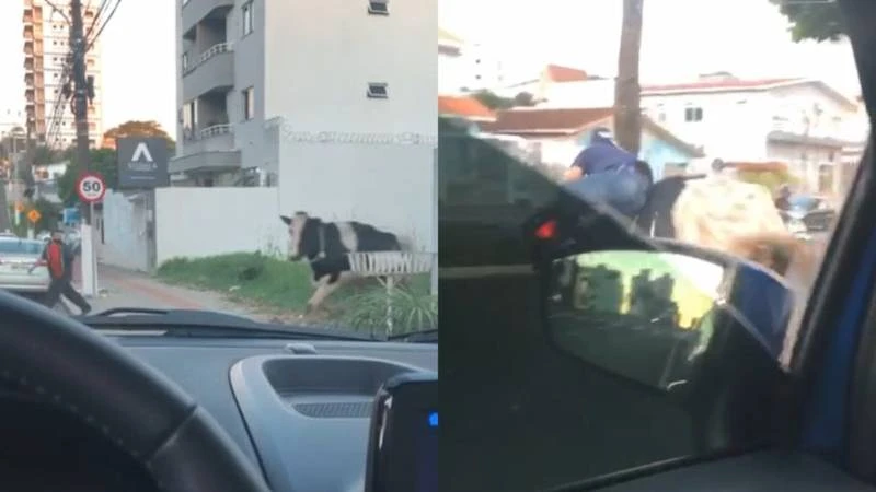 Um vídeo gravado por uma testemunha, que estava dentro de um carro parado no farol, registrou o momento em que o animal invadiu a via, passando por um trecho de matagal até chegar ao asfalto. Um pedestre desvia ao ver a aproximação da vaca, que atravessa as faixas em disparada e atinge o motociclista.