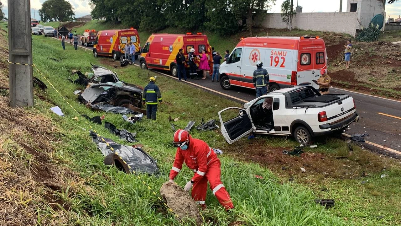 Cinco pessoas morrem na tarde desta sexta-feira (29), após uma gravíssima colisão entre carros na PR-180 em Cascavel.