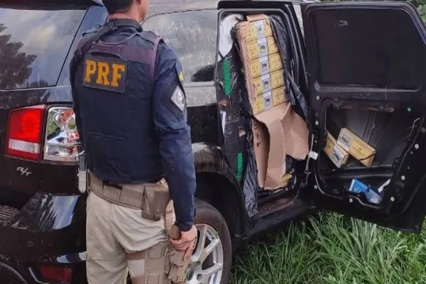 Dentro do SUV, foram encontrados cerca de 25 mil maços de cigarros, que foram apreendidos e depositados na Receita Federal. Em vistoria, os policiais descobriram que o veículo havia sido roubado em Foz do Iguaçu (PR), em agosto de 2020.