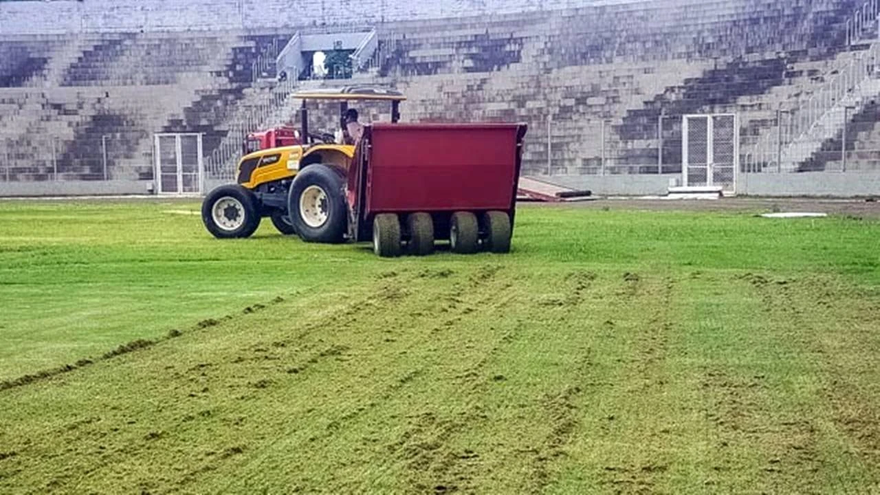 Tapete: gramado do Estádio Olímpico passa por manutenção de empresa especializada