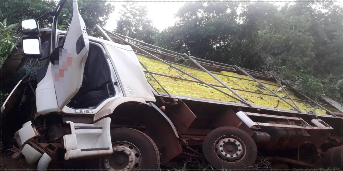 Segundo informações, o condutor de um caminhão que é utilizado para transportar frangos de aviários, acabou tombando na rodovia.
