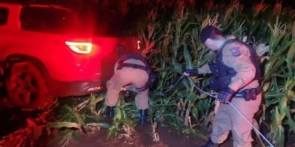 Os policiais iniciaram patrulhamento e algumas horas mais tarde, uma equipe da Rotam recebeu informações e localizou o veículo Toro abandonado em uma plantação de milho na Linha Cacic.