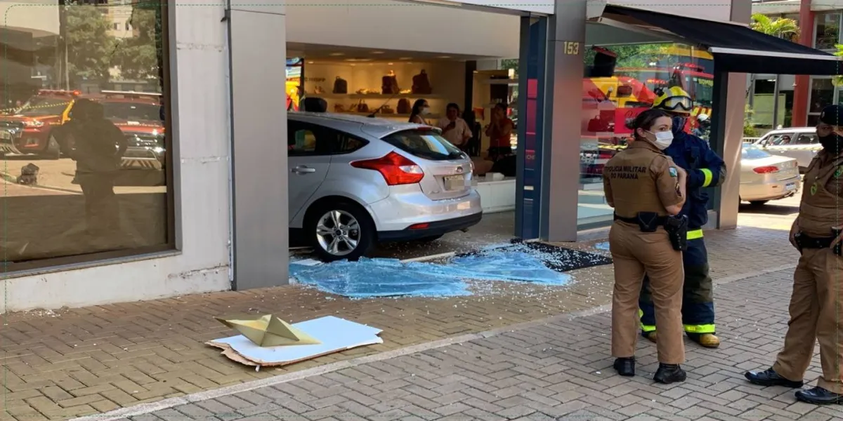 Veículo atinge três motos e invade loja no Centro de Cascavel