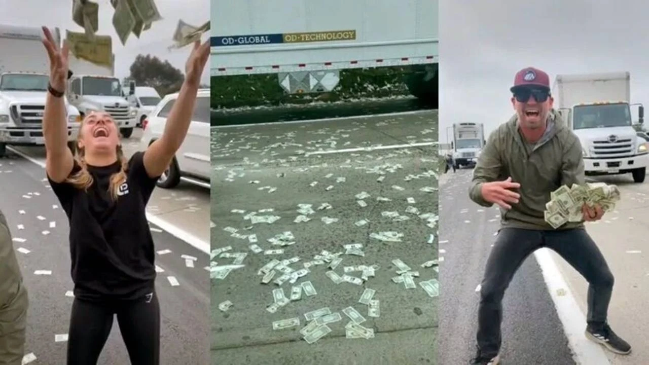 A "chuva de dinheiro" aconteceu em San Diego, na Califórnia, na Interstate 5, uma importante rodovia da Costa Oeste, que liga Los Angeles a Seattle.