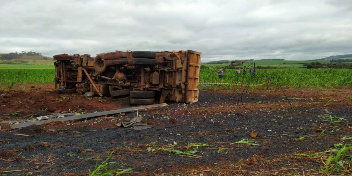Mercedes-Benz de Cascavel, transportava massa asfáltica, quando ocorreu a choque em um poste.