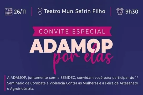 A Adamop (Associação das Primeiras-Damas do Oeste do Paraná) promove nesta sexta-feira (26) um encontro com personalidades marcantes na atualidade. Denominado "Adamop por Elas, o evento acontece no Teatro Sefrin Filho, das 9h30 às 17 horas.