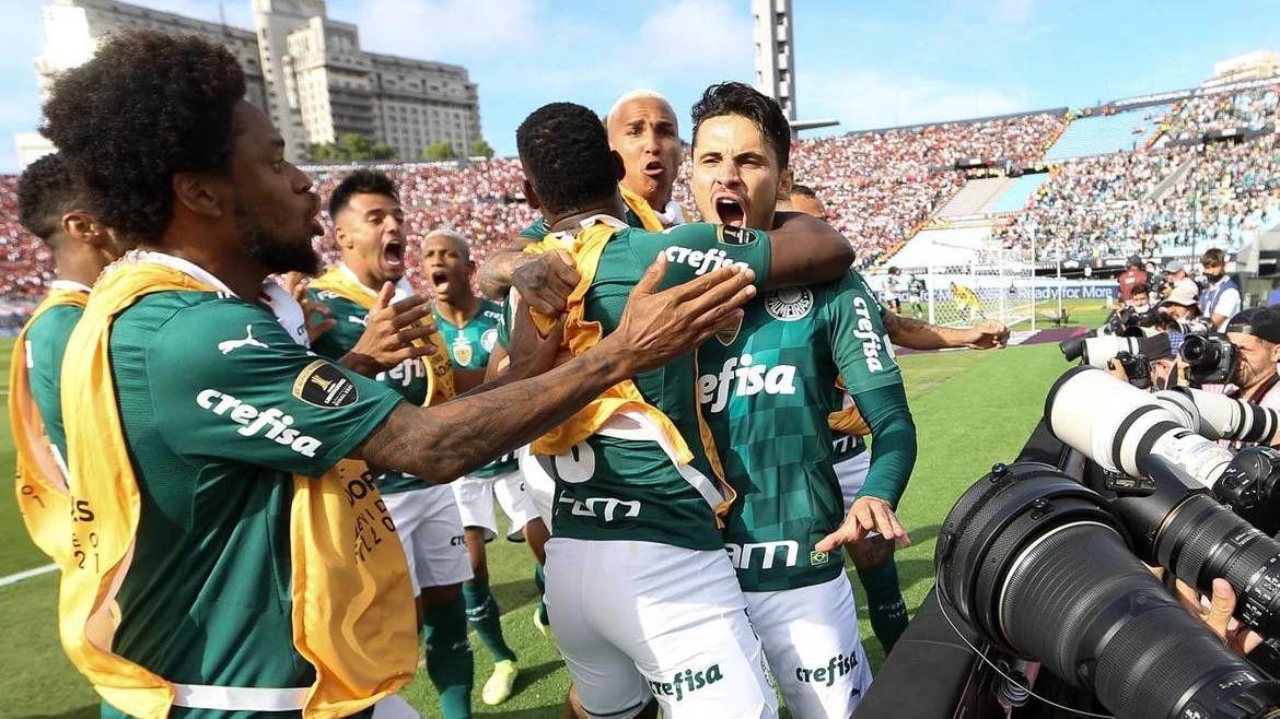 O Palmeiras é tricampeão da Copa Libertadores da América. O Alviverde fez 2 a 1 no Flamengo no estádio Centenário, em Montevidéu, no Uruguai, na tarde deste sábado (27). O primeiro gol palmeirense foi marcado pelo meia Raphael Veiga aos quatro minutos da etapa inicial. Após belo lançamento do zagueiro Gustavo Gómez pela direita para Mayke, o lateral cruzou com perfeição para trás e o artilheiro chegou sozinho para concluir forte e rasteiro para o fundo das redes. Na sequência do primeiro tempo, o jogo foi de muito equilíbrio e forte marcação.