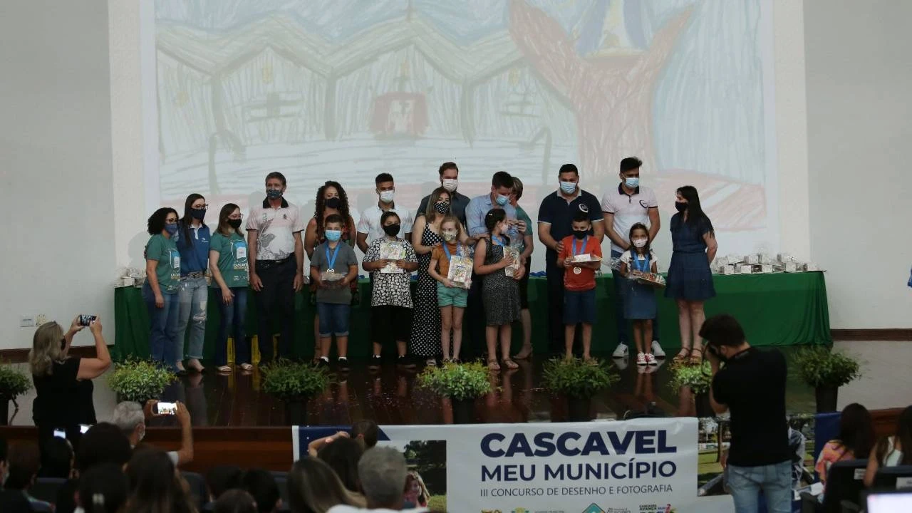 Alunos que participaram do 3º Concurso de Desenho e Fotografia “Cascavel Meu Município” foram premiados durante evento realizado na tarde desta quinta-feira (2) no Teatro Emir Sfair. Todos os participantes receberam certificados e medalhas e os primeiros colocados uma bicicleta.