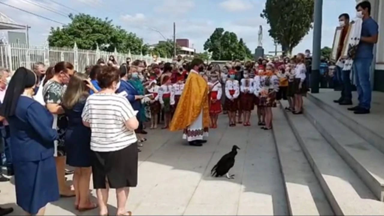 Urubu que acompanha missa no interior do Paraná viraliza nas redes sociais