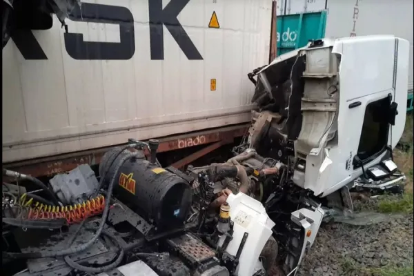 Um caminhão foi atingido por um trem de transporte de cargas ao cruzar uma linha férrea na BR-153 em Irati na região central do Paraná, nesta quinta-feira (16).