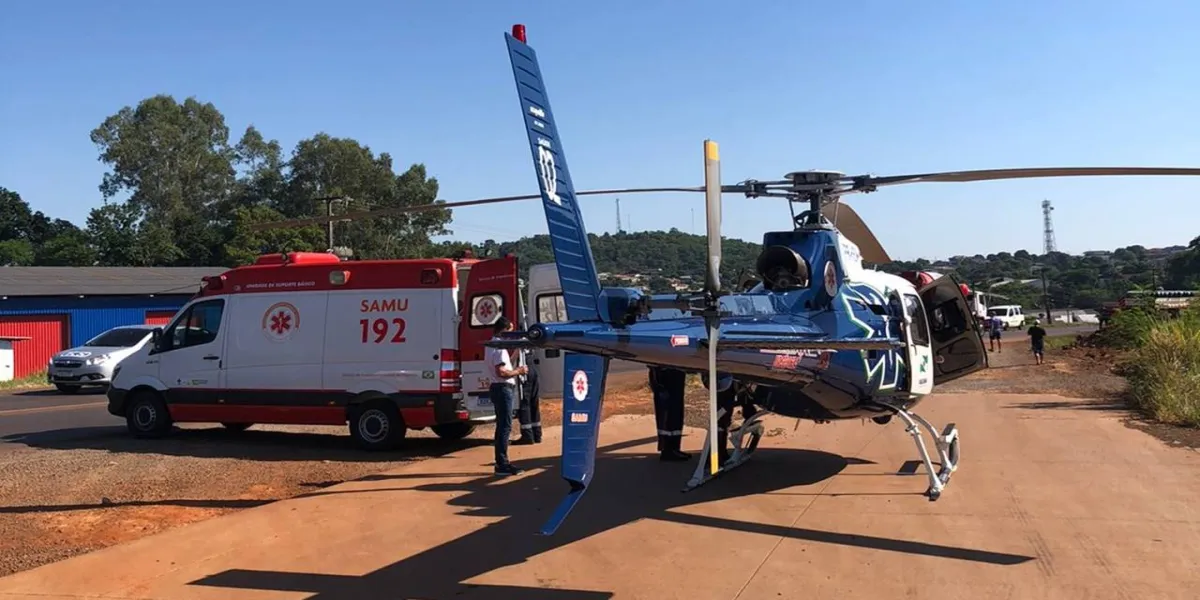 O Aeromédico do Consamu/Governo do Estado/Sesa foi acionada para fazer o atendimento ao homem que sofreu politraumatismo, em seguida a vítima para Hospital Universitário de Cascavel.