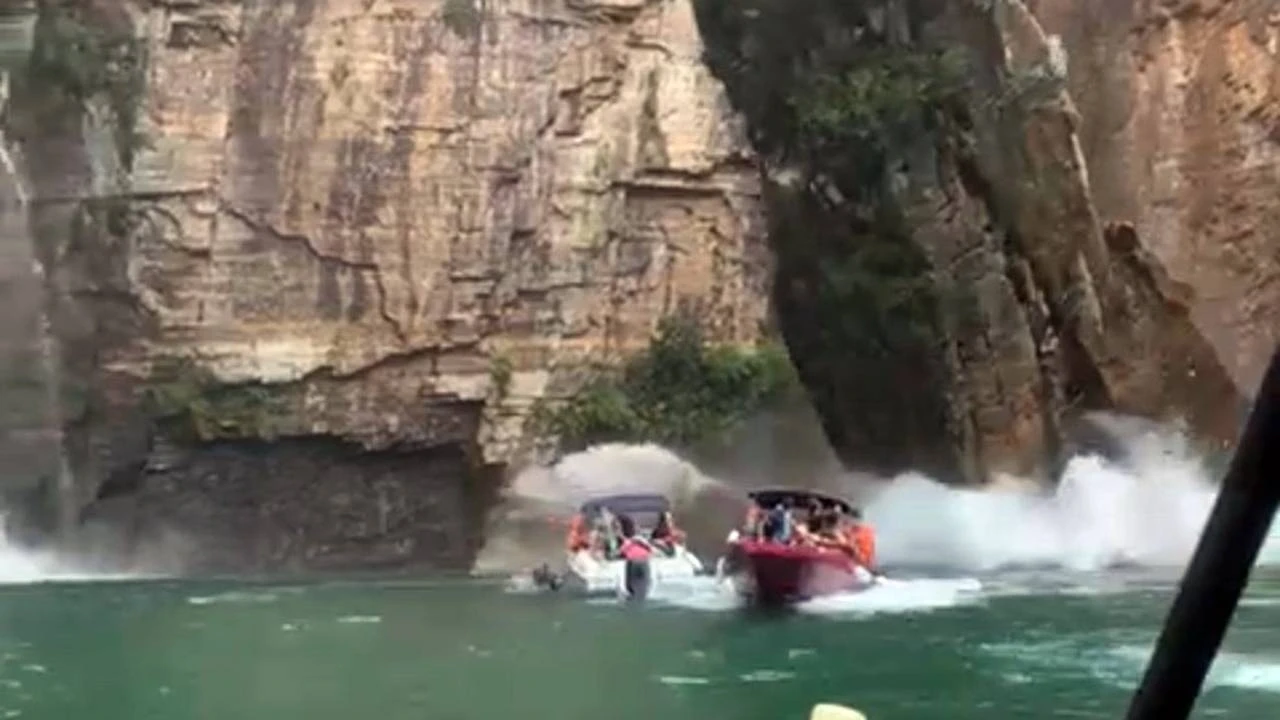 Deslizamento de pedras atinge embarcações com turistas em Capitólio; Veja o vídeo