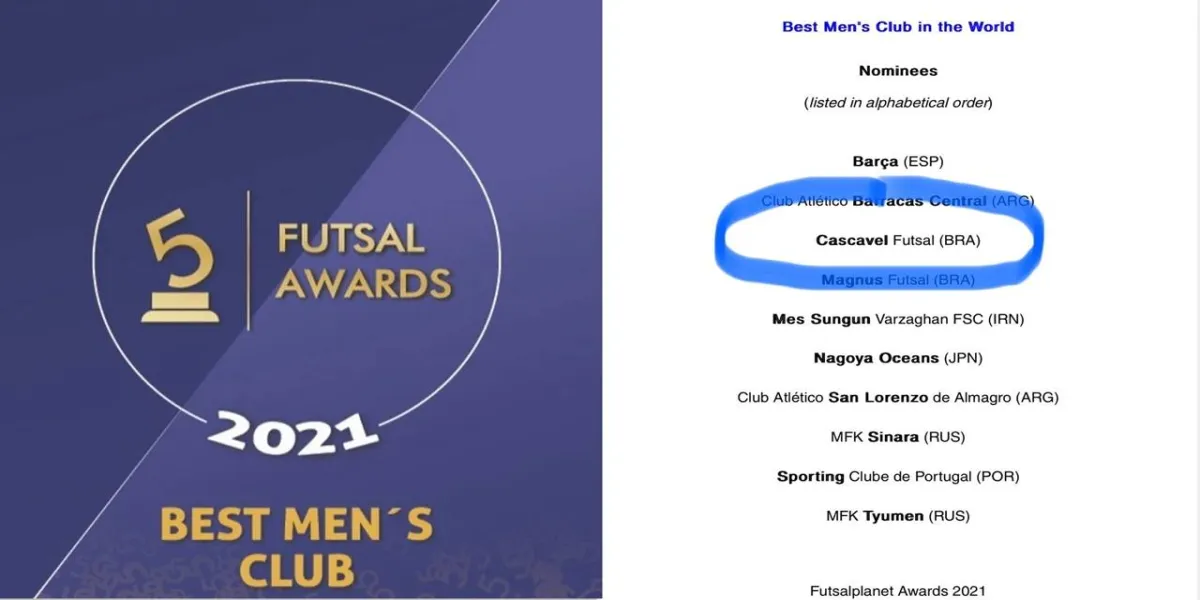 O site italiano especializado na modalidade Futsalplanet elegeu a Serpente Tricolor para o prêmio Futsal Arwards 2021, uma das premiações internacionais mais importantes, que acontece desde 1997.