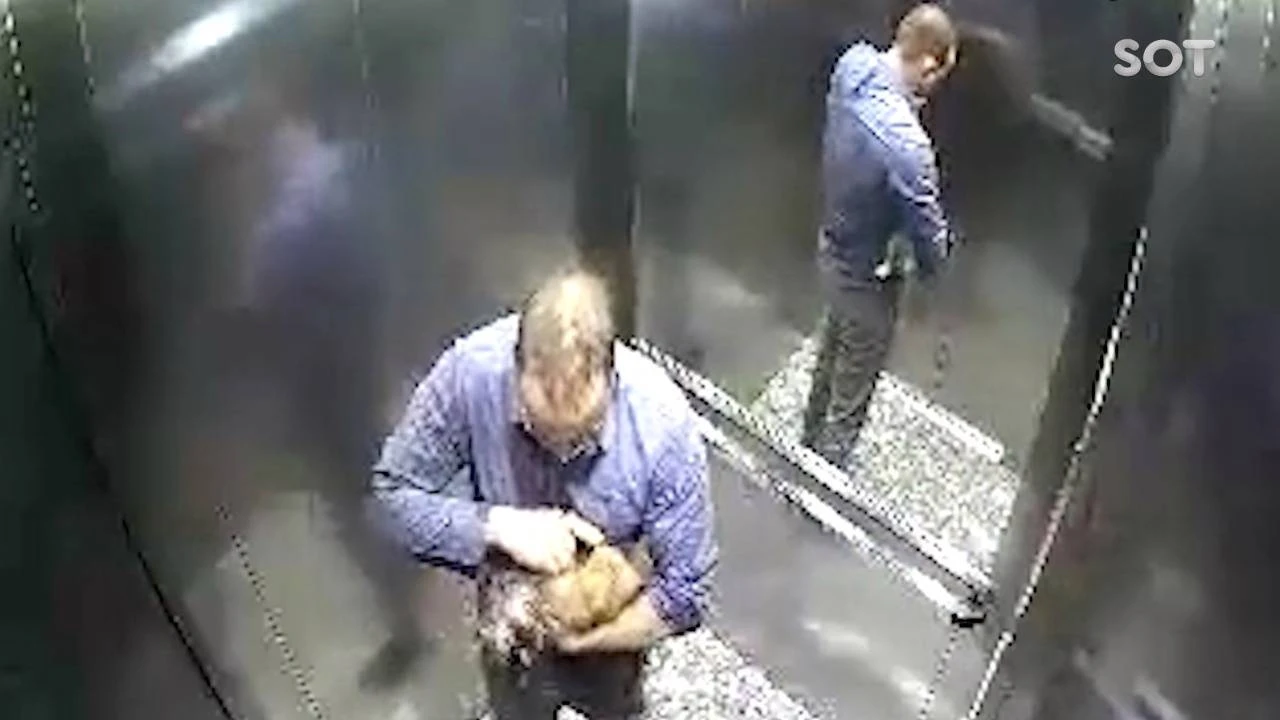Nas imagens é possível ver o homem dentro de um elevador tentando reanimar o o cãozinho. O dono do animal, estaria indo até o estacionamento para levar o cachorro até um veterinário.
