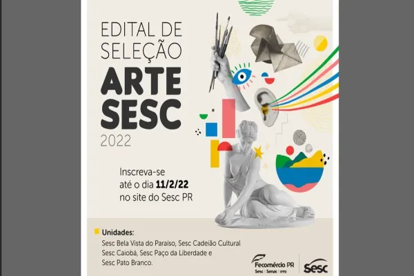 Está aberto até o dia 11 de fevereiro o edital de seleção para o projeto ArteSesc 2022. Serão selecionadas até 22 propostas de exposição de artes visuais, individual ou coletiva, para as unidades Bela Vista do Paraíso; Cadeião Cultural, em Londrina; Caiobá, em Matinhos; Paço da Liberdade, em Curitiba, e Pato Branco.