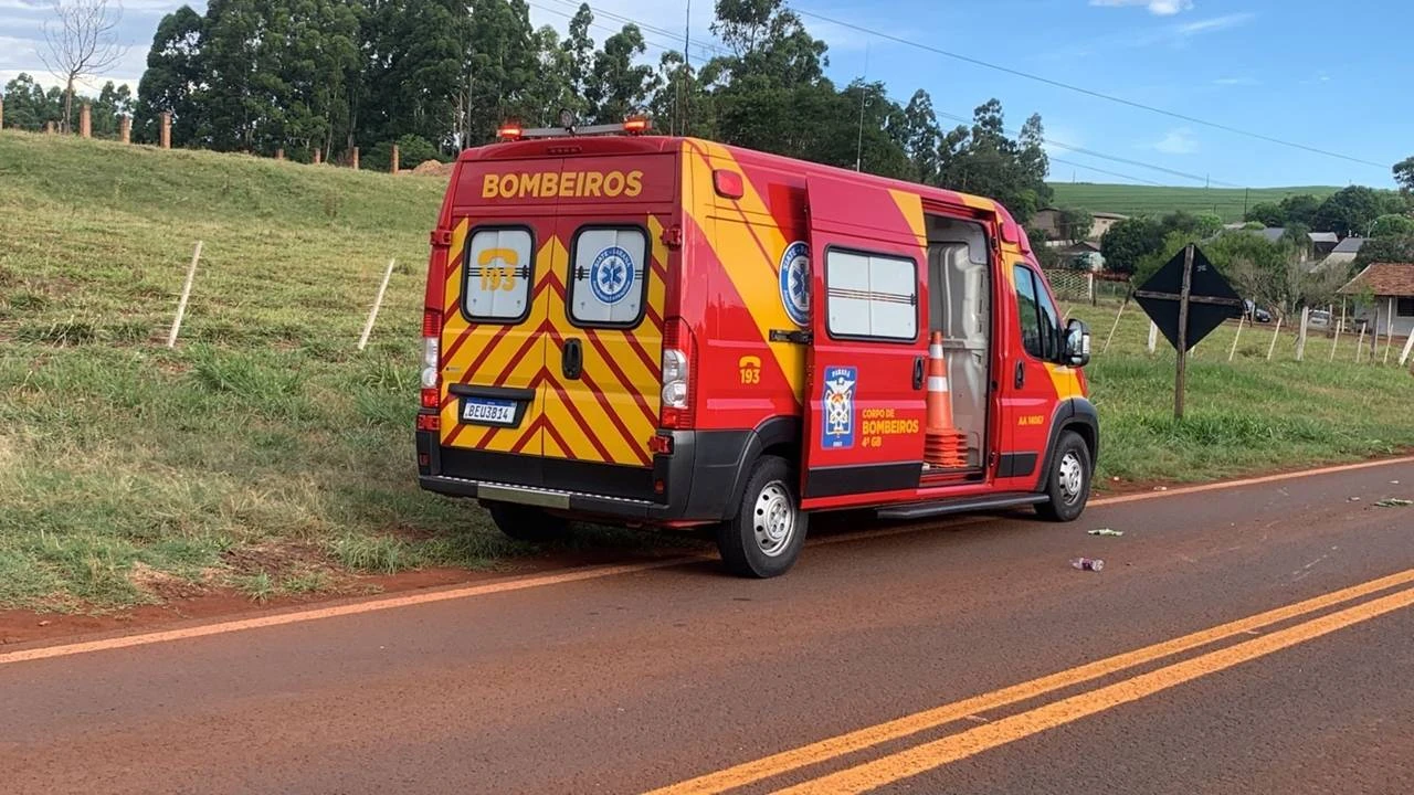 Três pessoas ficaram feridas após colisão entre moto e bicicleta na PR-180 em Rio do Salto