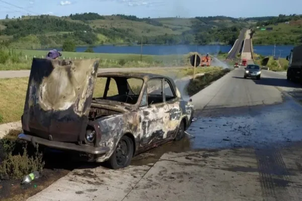 Veículo tem pane e pega fogo na BR-163, próximo a ponte sobre o Rio Iguaçu