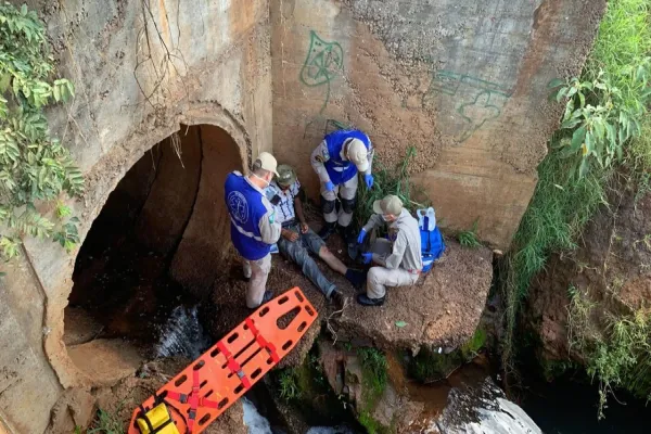 Homem sofre fratura em perna após cair em córrego no Jardim Colmeia