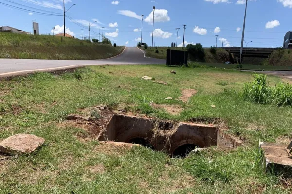 Internauta questiona caixa coletora de água pluvial aberta a quase um mês no trevo da Jorge Lacerda