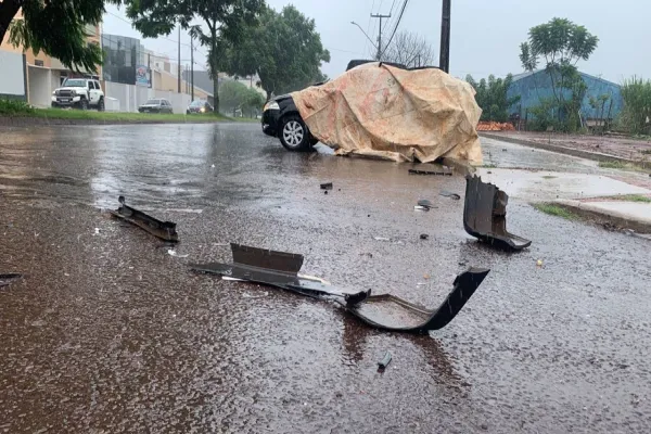 Uma lona foi posta em um dos veículos por conta da chuva, pois com o forte impacto, a janela do motorista do Fiat Pálio quebrou, e para não molhar por dentro do automóvel, populares cobriram o carro.