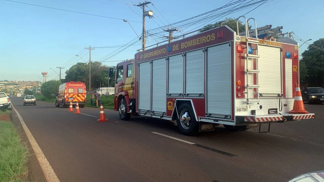 Ciclista fica gravemente ferido após colidir contra caminhão na marginal da BR-277