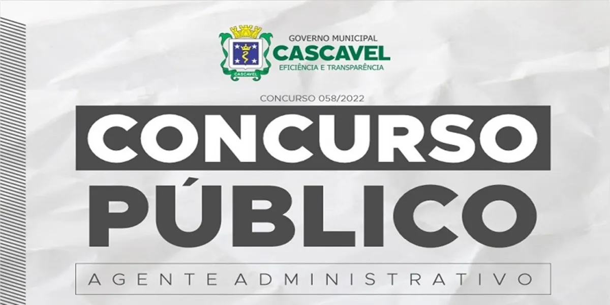 A Prefeitura de Cascavel irá abrir inscrições para Concurso Público de agente administrativo. No total são 30 vagas além de cadastro reserva com salário inicial de R$ 1.647,61. As inscrições poderão ser feitas de 10 de fevereiro a 9 de março pela internet e o valor da taxa é de R$ 80,00.