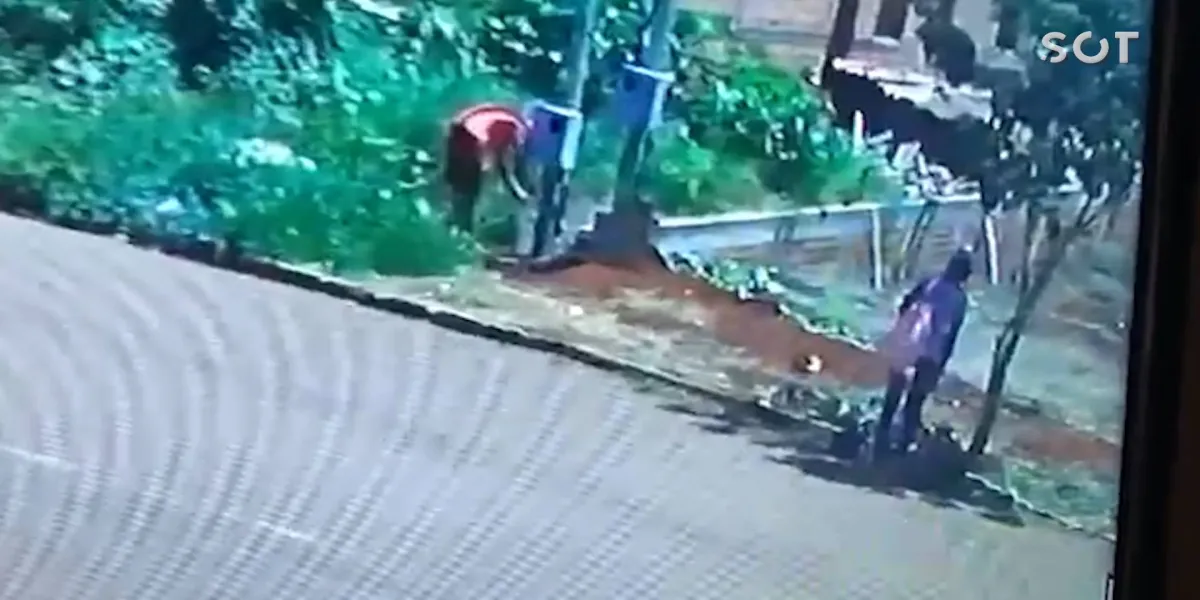 Toda a ação foi registrada por câmera de segurança. Uma equipe da Polícia Militar foi acionada para registrar a ocorrência.