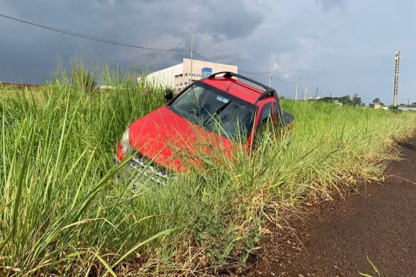 Uma colisão traseira seguida de saída de pista foi registrada no final da tarde deste domingo (13), na BR-467 em Cascavel.
