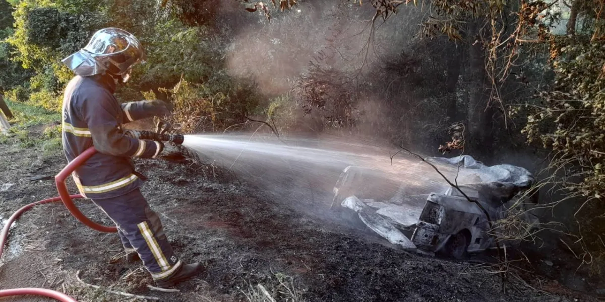Equipes do Corpo de Bombeiros combateram as chamas do veículo e socorreram a condutora ao hospital para atendimento médico.