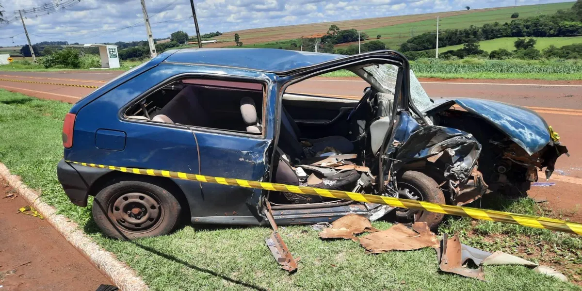 Gol fica destruído após forte colisão na PR-180 em Cafelândia