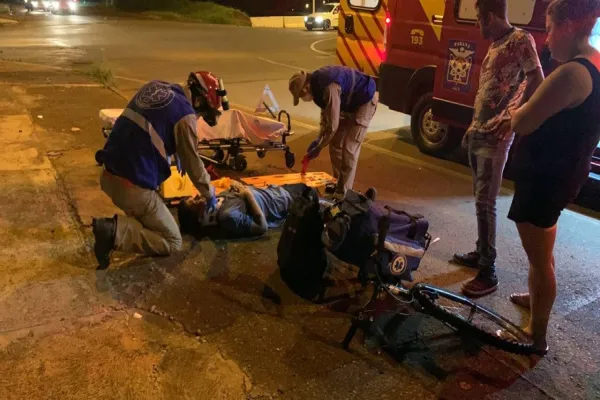 Um ciclista ficou ferido na noite desta segunda-feira (07), após ser atingido por um carro na Rua Ipanema.