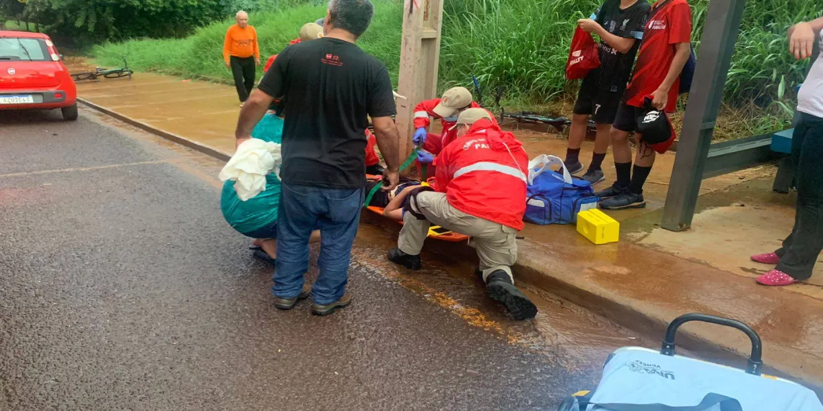 Ciclista de 11 anos fica em estado grave após colidir em ponto de ônibus na Av. Olindo Periolo
