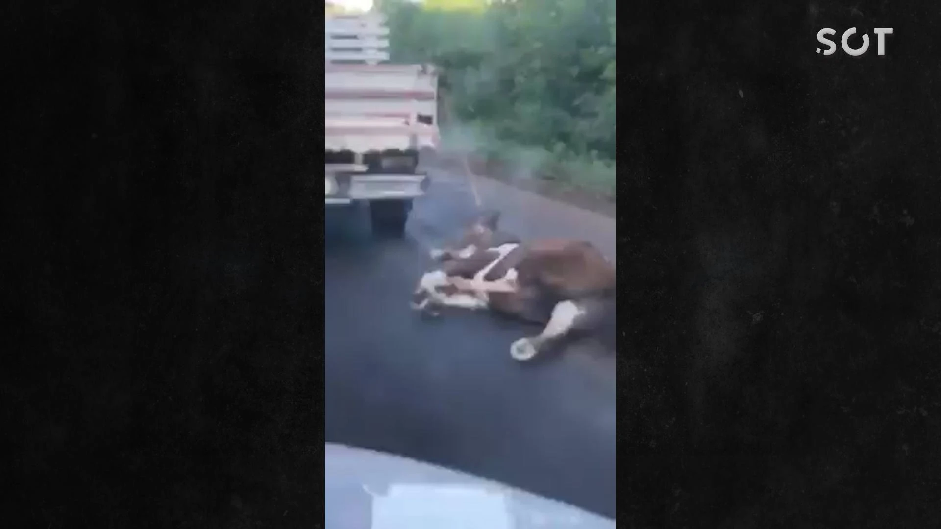 No vídeo filmado por um motorista é possível verificar que o carro que seguia atrás dava sinais de luz e buzinava o tempo todo como forma de “alertar” o motorista de que o cavalo estava amarrando sendo arrastado. Todos os sinais foram ignorados pelo condutor.