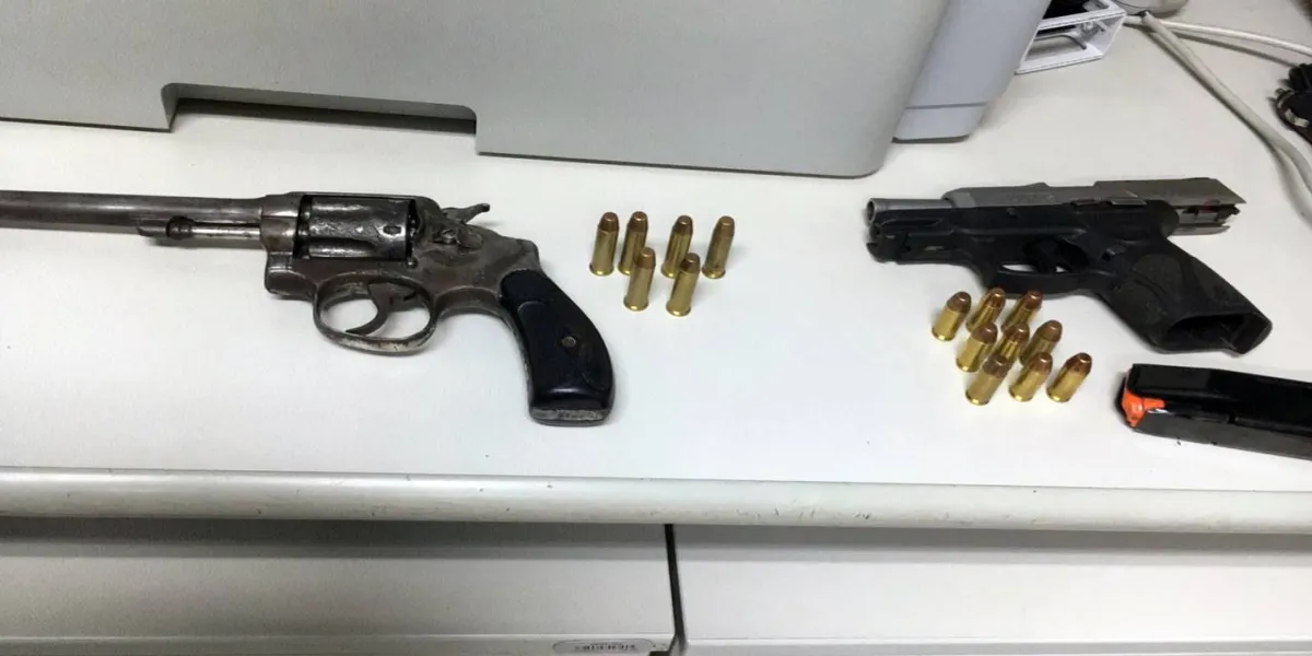 Durante os procedimentos, os policiais encontraram no interior do veiculo um revólver e uma pistola com numeração suprimida. Além disso havia 6 munições calibre .380, 10 munições calibre .40 e 3 telefones celulares.