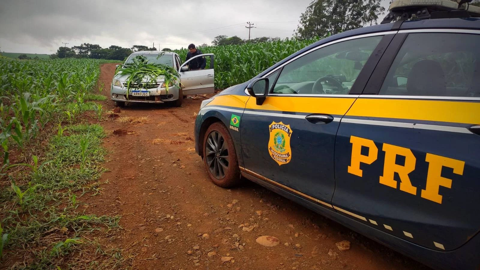 Contrabandista arremessa o carro em meio a plantação para fugir da PRF Cascavel