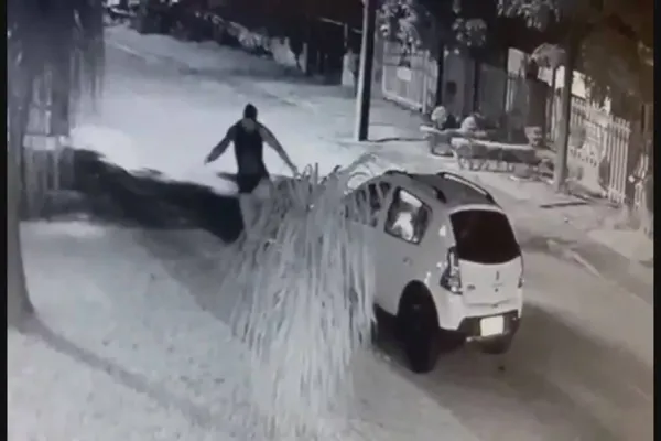 Nas imagens, é possível ver também que a mulher saiu do carro. O vídeo mostra que ela deitou no chão e se ajoelhou durante as agressões contra o sem-teto.