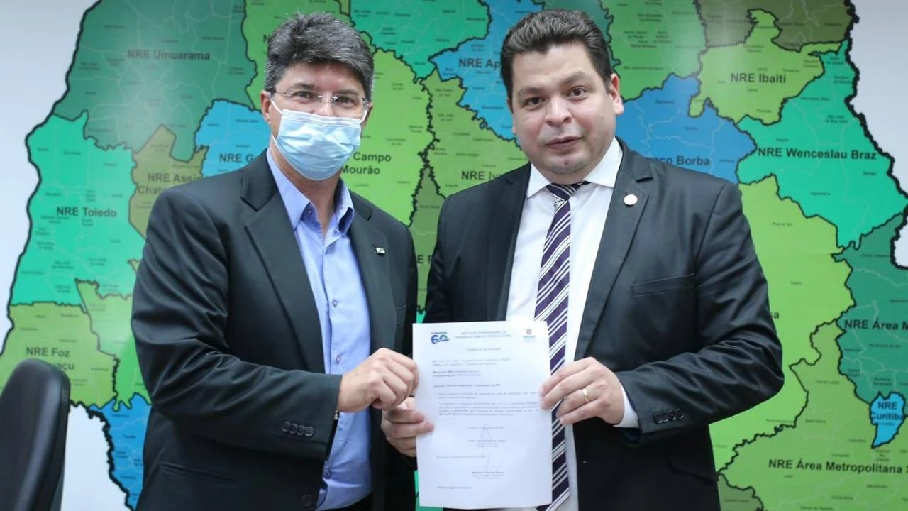 O presidente do Fundepar (Instituto Paranaense de Desenvolvimento Educacional), Marcelo Bueno assinou na presença do vice-líder de governo da Assembleia Legislativa, deputado estadual Gugu Bueno, a autorização para licitar o Colégio Estadual Riviera.