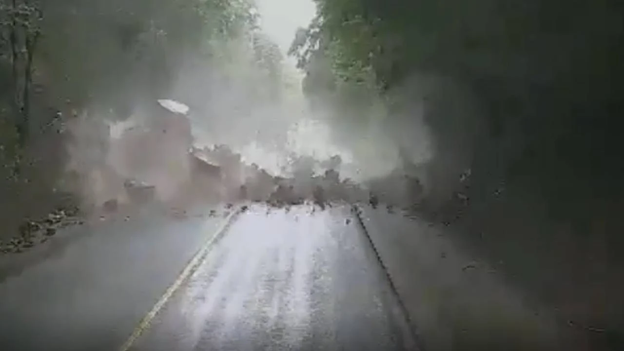 Que susto! Caminhoneiro flagra deslizamentos de pedras em rodovia no sudoeste do Paraná