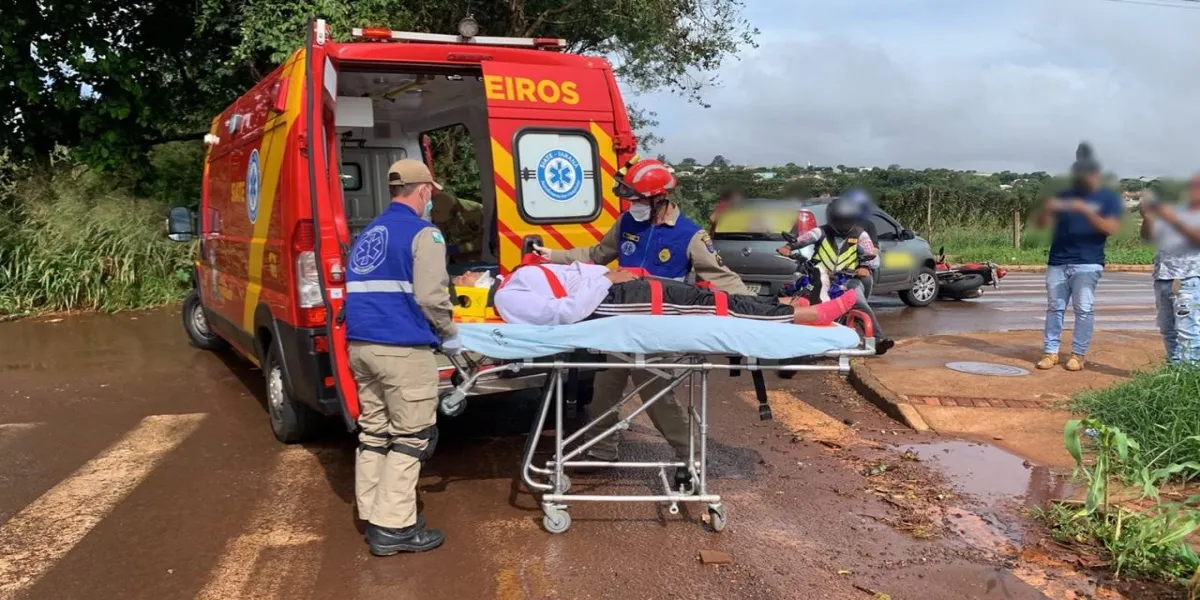 Mulher de 28 anos sofre contusão em crista ilíaca após colisão entre carro e moto no Bairro Tarumã