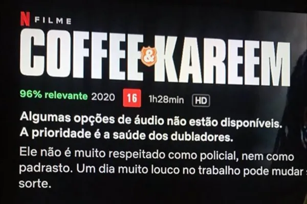 A plataforma está notificando as atrações sem disponibilidade com uma mensagem focada na saúde dos profissionais da dublagem. "Algumas opções de áudio não estão disponíveis. A Prioridade é a saúde dos dubladores".