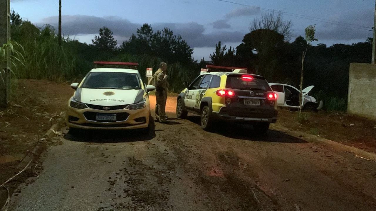 A equipe então, arribou o portão, os suspeitos fugiram novamente onde a equipe fez acompanhamento tático. Logo após, os marginais acabaram batendo o veículo em um barranco, em seguida fugiram a pé em meio ao matagal.