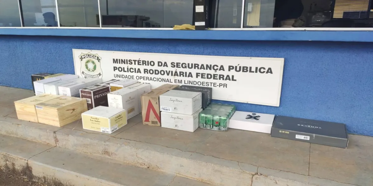 Em Lindoeste/PR, na BR 163, km 180, em frente a Unidade Operacional da PRF, por volta das 14h00, de hoje, 07/04/22, foi dada ordem de parada para o condutor de veículo Toyota/Corolla, homem de 34 anos e ao ser verificado no interior do veículo e porta malas foi constatado transporte de grande quantidade de bebidas, inicialmente visualizadas como sendo vinhos de marcas diversas.