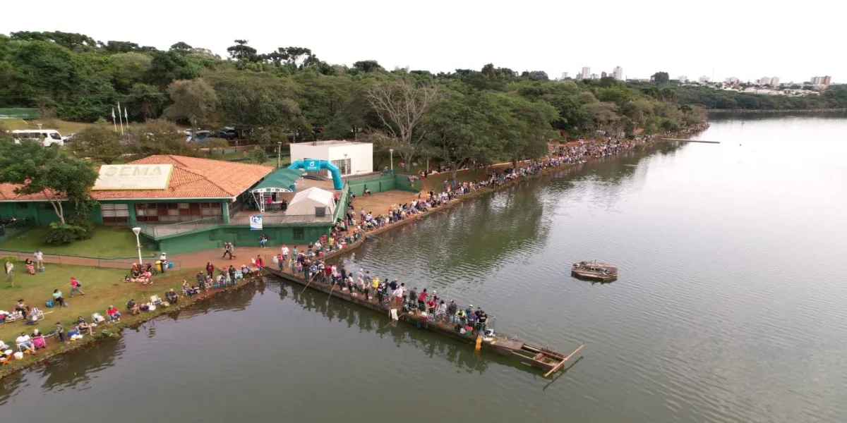 O domingo começou diferente e divertido para uma multidão que margeia o Lago Municipal de Cascavel desde às 7h para participarem da tradicional pesca. Muitas pessoas madrugaram ou passaram a noite no local aguardando os portões abrirem para um dia de lazer no entorno do principal cartão-postal da cidade. Além do evento, tem a parte social da pescaria já que o ingresso foi trocado por um quilo de alimento destinado ao Provopar e outras entidades assistenciais que atendem pessoas em vulnerabilidade social.