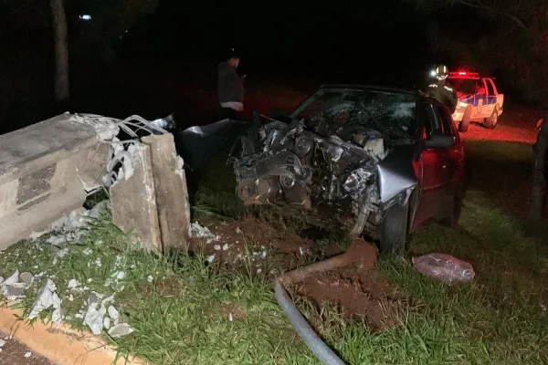 Dois rapazes ficaram feridos na madrugada deste segunda-feira (18), após se envolverem em uma forte colisão de trânsito no Lago Municipal de Cascavel.