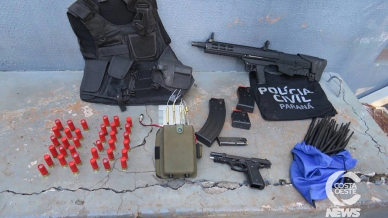 Um operação da Polícia Civil desencadeada na manhã desta quarta-feira (20), em Santa Helena, culminou no cumprimento de três mandados de prisão e a apreensão de armamentos como uma escopeta Cal. 12 e uma pistola 9mm, munições, bloqueador de sinal, além de vestimentas da Polícia Civil e coletes balísticos.