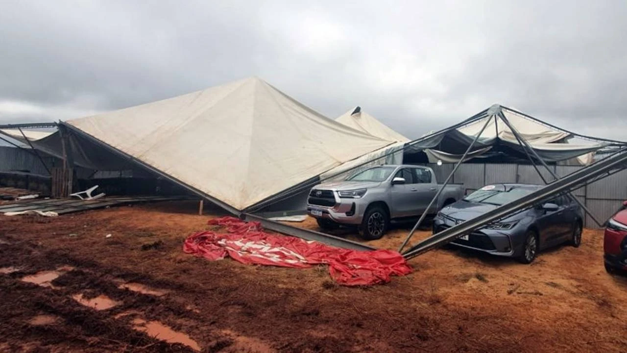 Estrutura de rodeio não resiste aos fortes ventos e evento é cancelado em Cafelândia