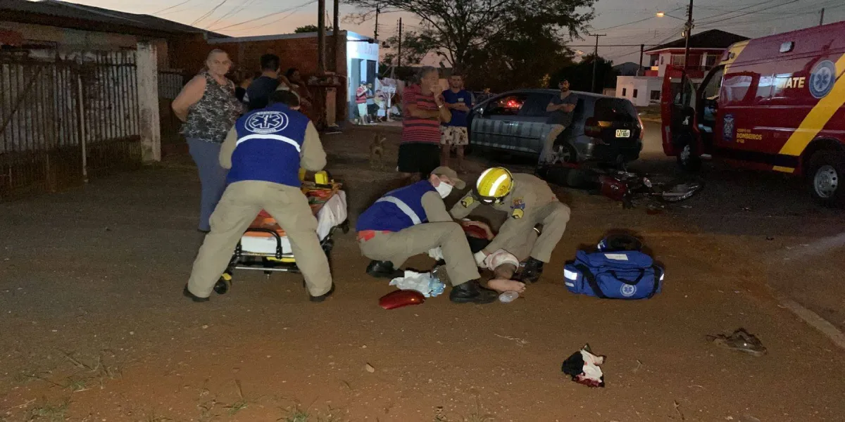 Motociclista sofre fratura de fêmur e laceração em joelho após colisão no Jardim Esteves em Cascavel