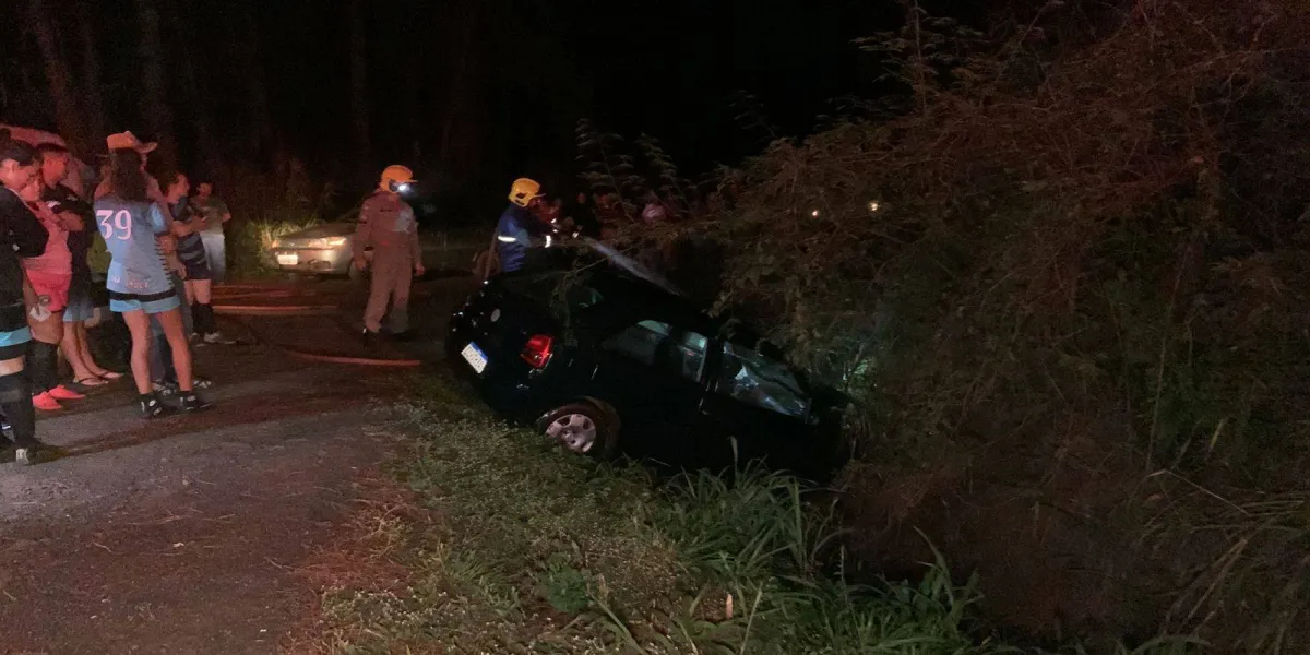 Quatro mulheres ficam feridas após carro cair em valeta de escoamento de água na PR-180 em Cascavel